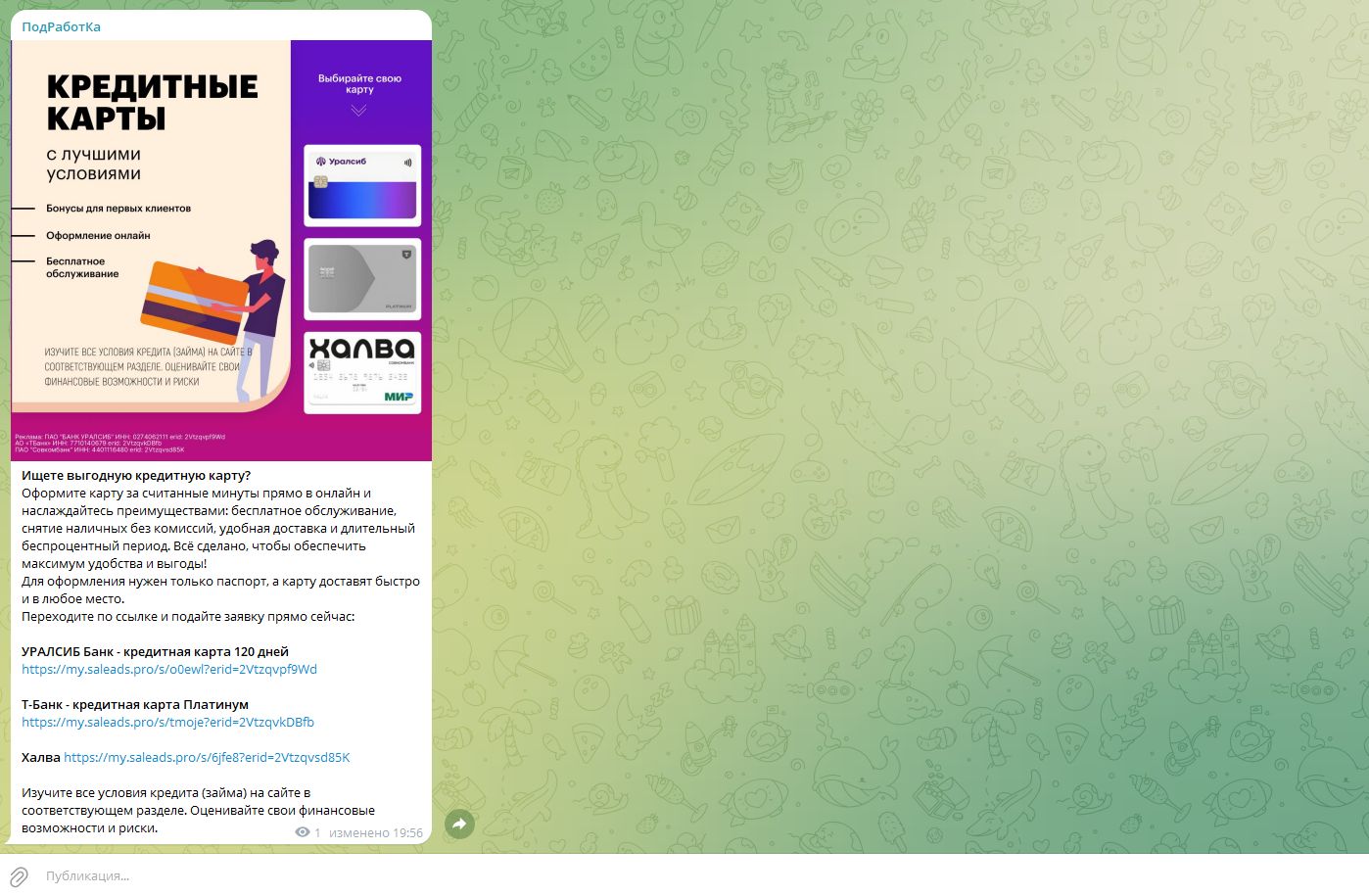 Пример размещения креатива в телеграм-канале