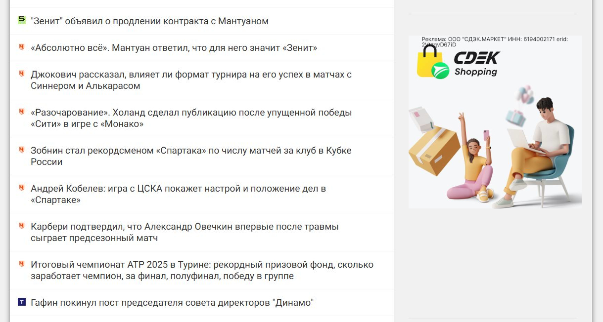 Пример размещения креатива в боковой колонке новостного сайта