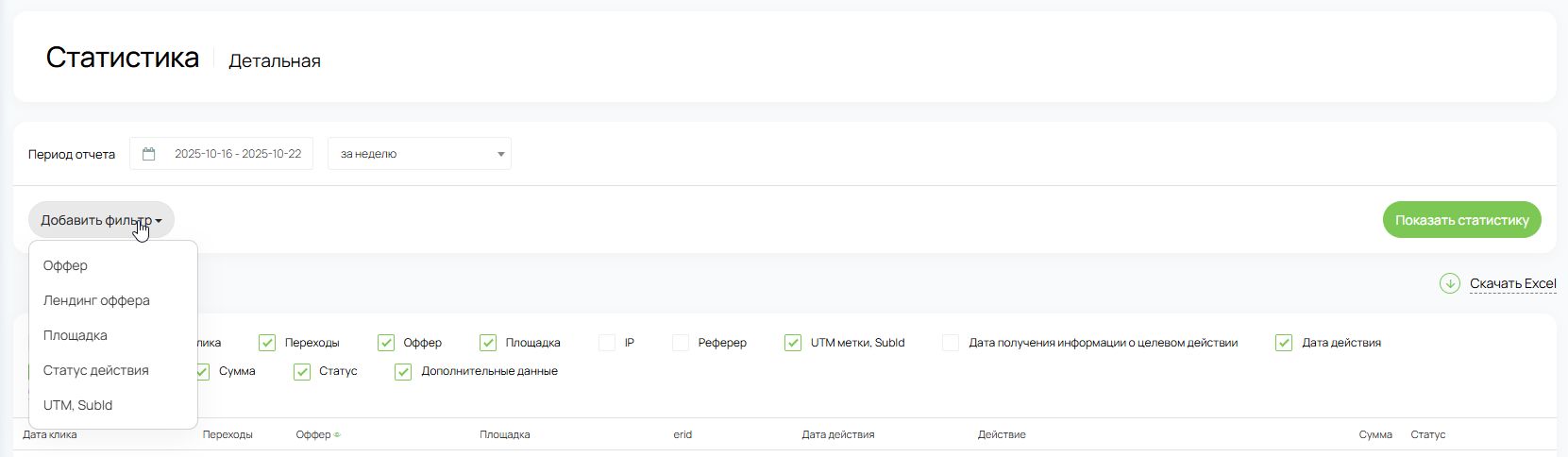 Построение детальной статистики в личном кабинете Saleads