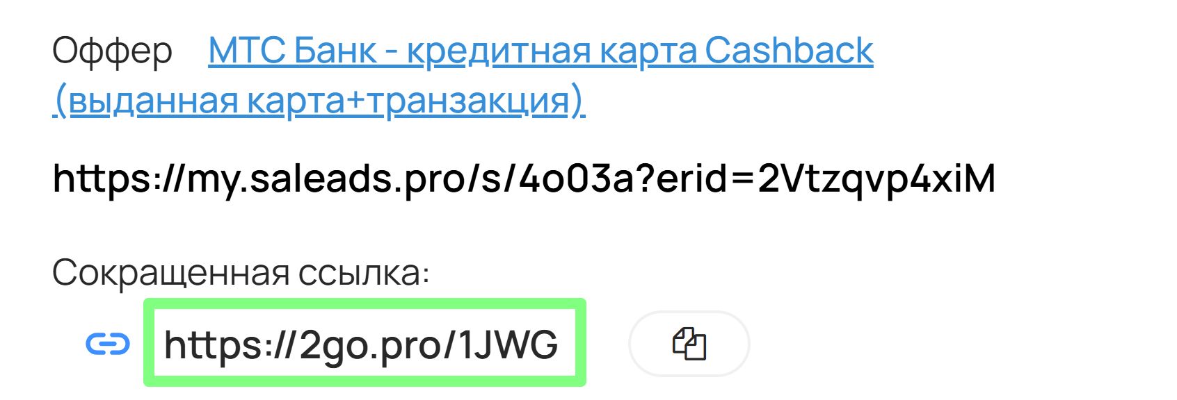 Этот инструмент находится в разделе «Сокращение ссылок + QR». Нужно вставить партнёрскую ссылку, нажать кнопку «Сократить» — и система выдаст короткий вариант, который сразу готов к размещению.