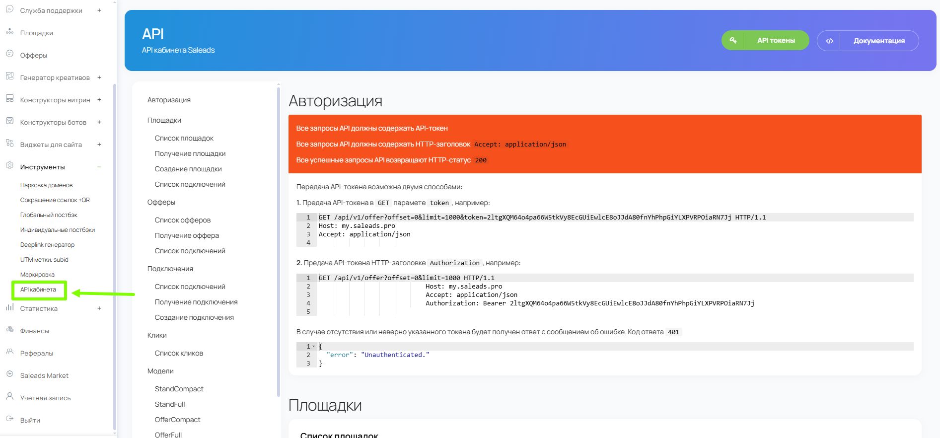 Интеграция по API нужна для того, чтобы автоматизировать часть работы: получать статистику напрямую, создавать партнёрские ссылки без входа в кабинет или сверять конверсии с CRM и аналитическими системами. Для этого используется API-токен — уникальный ключ доступа, который позволяет связать ваш аккаунт с внешними инструментами.
