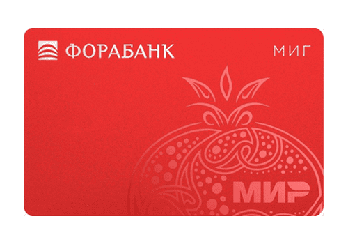 Фора-Банк — надёжный финансовый партнёр, предлагающий широкий спектр банковских услуг. Банк заботится о своих клиентах и стремится обеспечить им удобный доступ к финансовым инструментам. Миг — дебетовая карта от Фора-Банка, которая позволяет управлять финансами. С картой доступны платежи и переводы, снятие наличных. Карта обеспечивает удобный доступ к средствам и даёт возможность пользоваться различными банковскими сервисами.