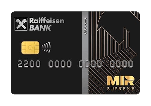 Райффайзен Банк — надёжный финансовый партнёр, предлагающий широкий спектр банковских услуг. Банк заботится о своих клиентах и стремится обеспечить высокий уровень сервиса. Мир Supreme — премиальная дебетовая карта, которая подчёркивает статус её владельца. Карта предоставляет доступ к эксклюзивным привилегиям и бонусам. С картой доступны выгодные условия по кэшбэку и другим операциям. Держатели карты могут пользоваться расширенной программой страхования и другими привилегиями. Мир Supreme — выбор тех, кто ценит комфорт и качество банковских услуг.
